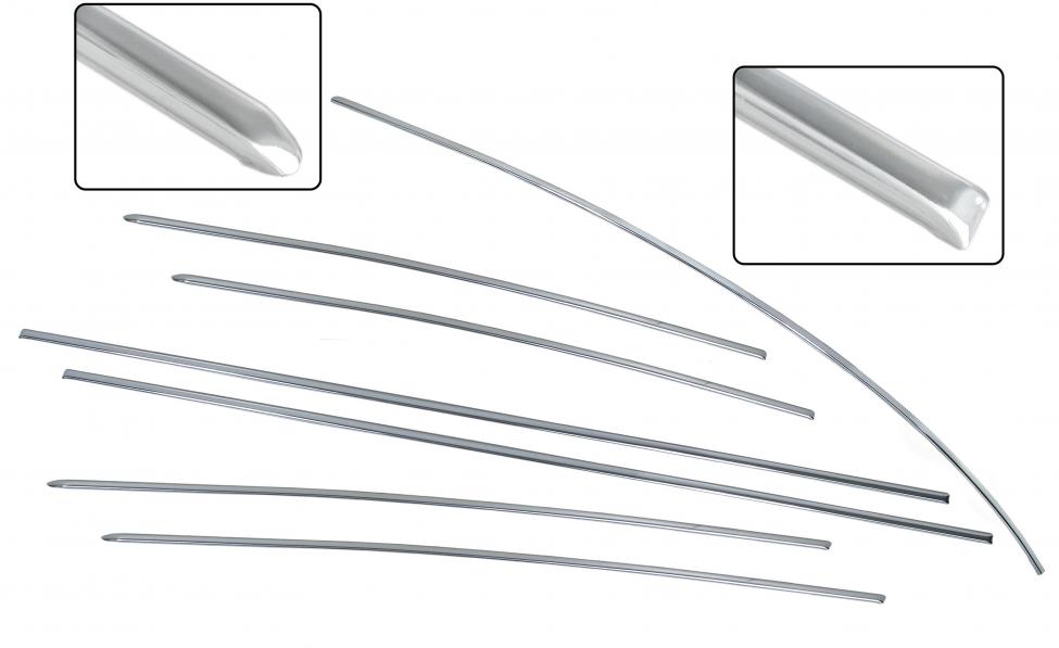 Aluminium hält nicht viel aus, eine Delle ist schnell gemacht, deshalb haben wir für einige Jahre und/oder Modelle Aluminiumleisten, aber auch in poliertem Edelstahl. Für einige Modelle sind sie sogar nur in poliertem Edelstahl erhältlich. Edelstahl ist viel stabiler, und wenn sie auf Hochglanz poliert sind, braucht man sich nicht mehr darum zu kümmern, während man bei Aluminium nacharbeiten muss, um den Hochglanz zu erhalten.