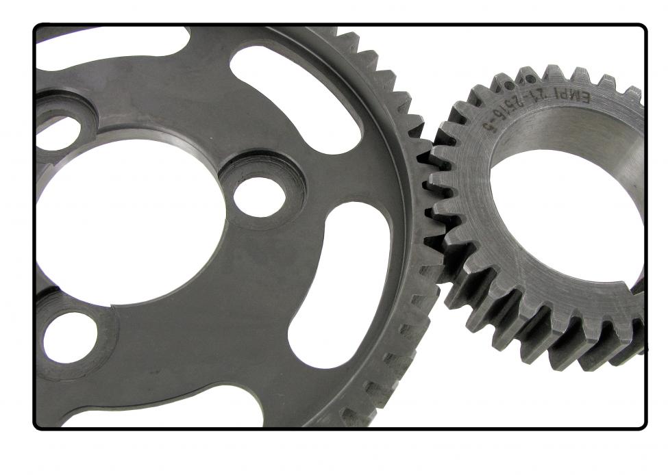 If you choose the set with the adjustment option, the camshaft gear is adjustable 2 or 4 degrees (use the black adjustment discs if no adjustment is needed), you can adjust this afterwards through the oil pump hole.