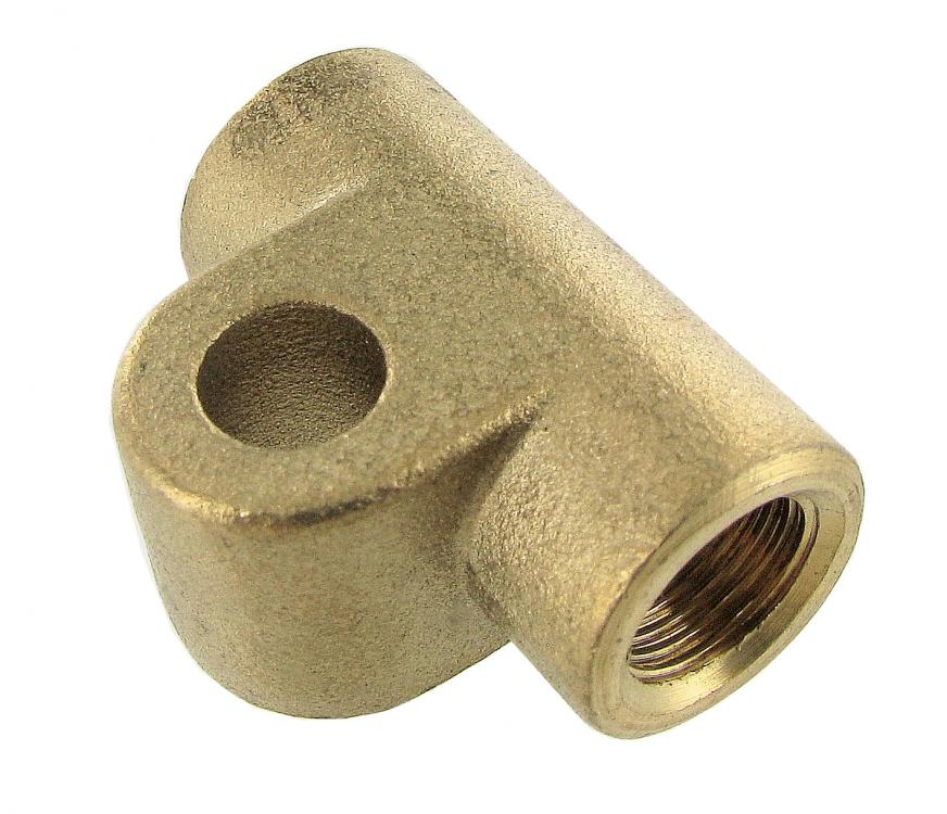 Both the straight connector and the T-piece have a mounting hole for attachment to the chassis or body.