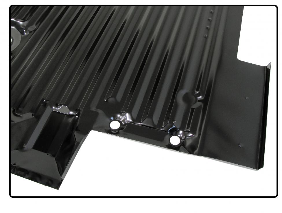 The floor plates for the Volkswagen Split Bus are more completely assembled in the factory than the original, as they are already equipped with the plates and brackets for the bench seat.