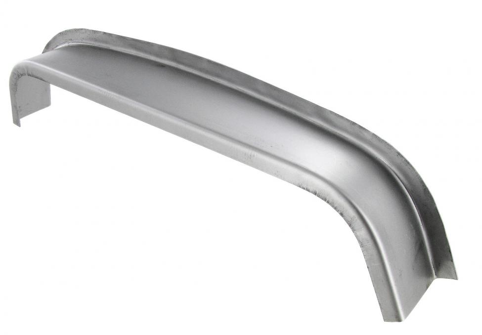 This repair part replaces the lower part of the door, near the entrance. For a perfect restoration, generously sand the affected area. If necessary, cut the repair part to size and weld the parts together. Drill the original spot welds where two metal parts overlap. Then spot-weld the new part back into place. If you don't have a spot-welding machine, drill small holes in one of the overlapping parts and fill them with welding material. This is how you simulate a spot weld.