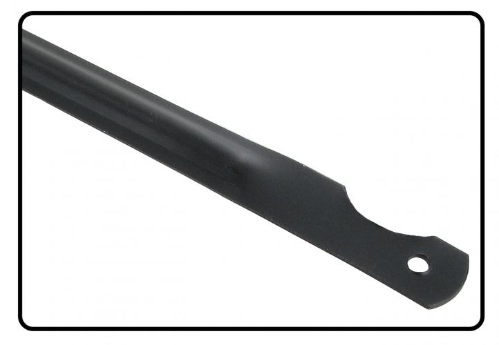 This lever operates a rotation mechanism that is fixed to the lock by means of a locking rod. In the early years of construction, a flat sheet metal was used in which a profile was pressed and used as a central reinforcement, then it was improved by using a round rod which proved to be much more resistant.