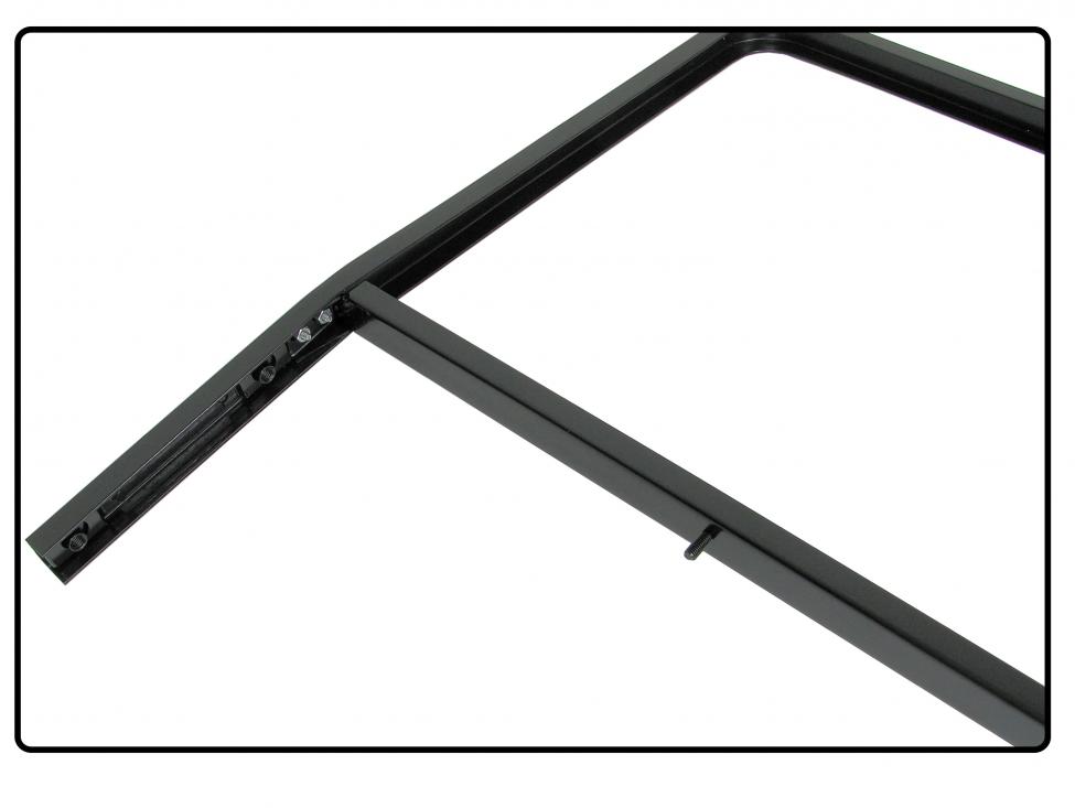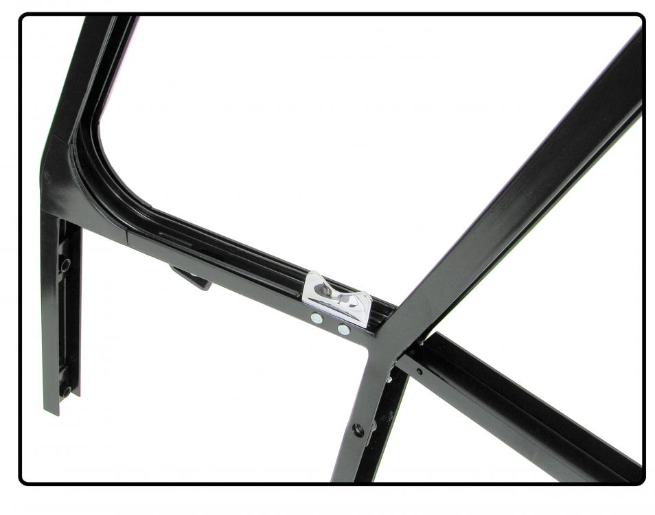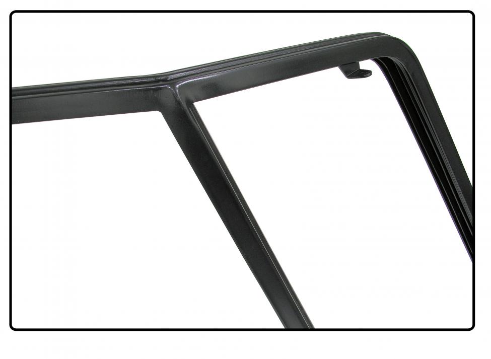 The door window frame mentioned here has a solid black powder coating and comes with horizontal window channels. These window channels were never delivered separately by Volkswagen, although they are a part that can be screwed on separately. The frame also has a riveted vent window support, i.e. mounted in the same way as originally.