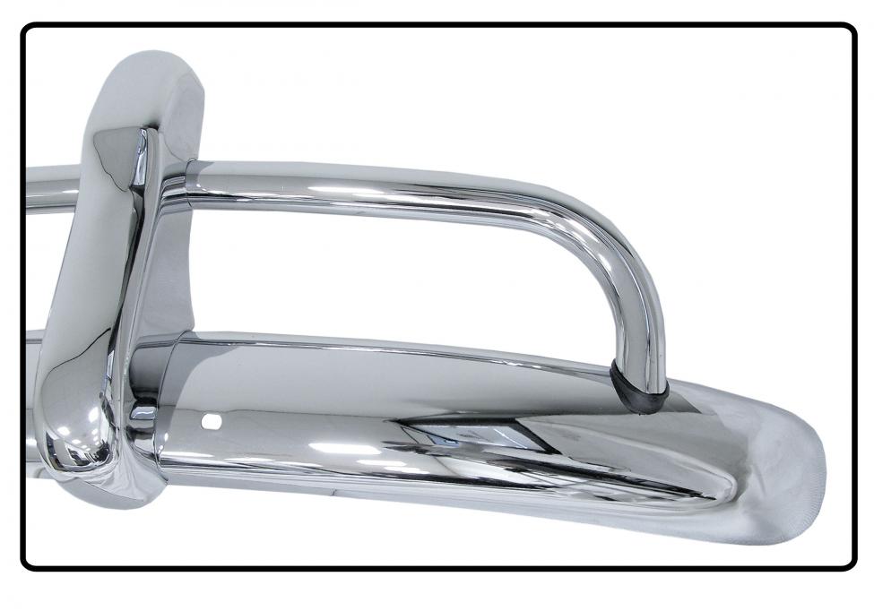 Although the quality of chromium is good, chromium steel still needs maintenance. If you don't want to polish your bumpers regularly and prefer to have a bumper that never rust again, then the models with overrider tubes are also available in polished stainless steel (see the alternatives tab).
