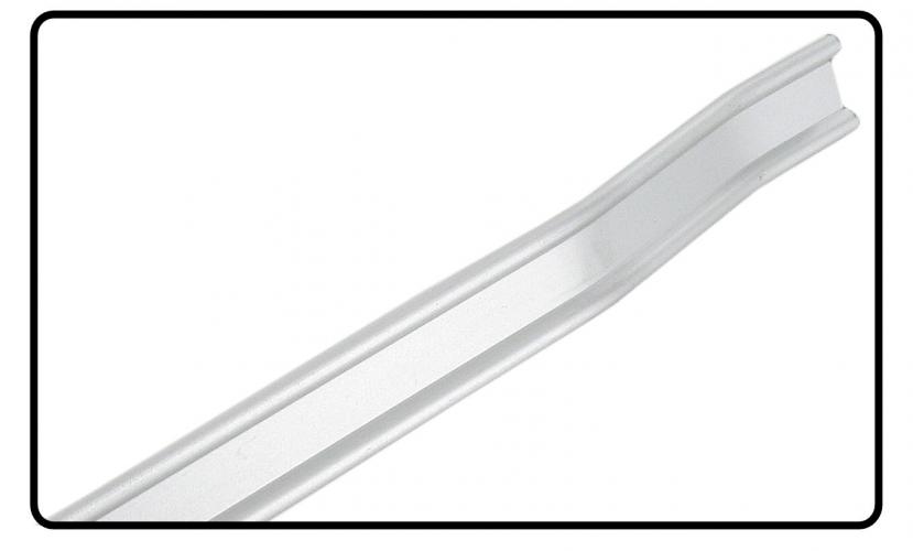 These reproduced curtain rails are similar in shape and material (aluminium) to the original but not yet provided with mounting holes.