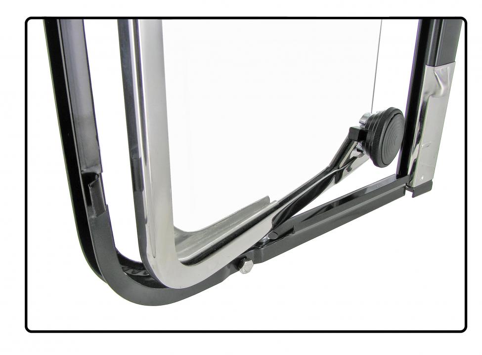 Complete vent windows come ready to install with a black or chrome frame around the glass, depending on what was originally used or what best suits your personal taste. The only thing you need to take extra for some vent windows is the rubber around the window, if it's not included, you can find it in the options tab.