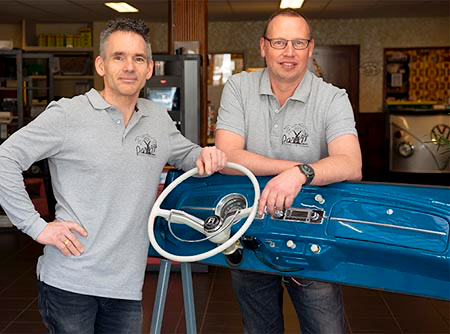 Wim de Keijzer ja Evert Poelman perustivat Paruzzi Classic Car Parts -yrityksen vuonna 1989. Wim (kuvassa oikealla) vastaa asiakaspalvelusta. Vasemmalla on Evert Poelman, joka on tuote- ja hankintapäällikkö. Yhdessä he ovat Paruzzin sydän ja sielu.