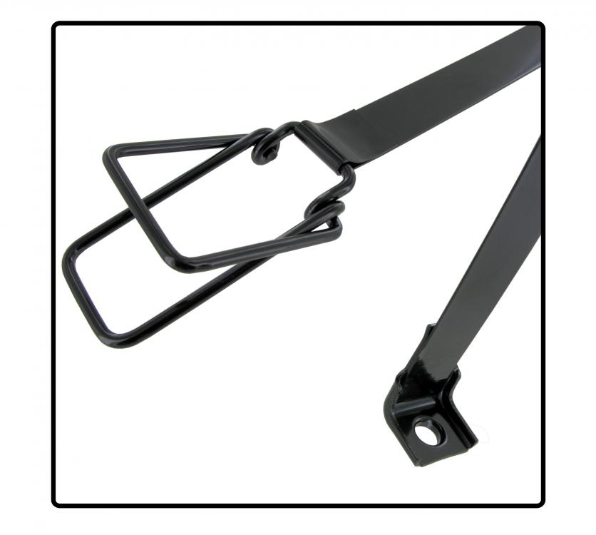 Vuosien varrella on käytetty useita erilaisia menetelmiä akun kiinnittämiseksi. Akun suojuksesta, joka vedetään pohjaan jousien ja puristimien avulla, kiristyshihnasta, joka pitää suojakannen suoraan kiinni, yksinkertaiseen kiinnityskannattimeen, joka kiinnittää akun vain pohjaan.