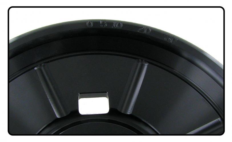 Teräksisissä hihnapyörissä on alkuperäisen mallin tapaan sisäreunassa lovet yläkuollutta pistettä ja sytytysaikaa varten, kun taas alumiinisessa hihnapyörässä on asteikko ulkoreunassa.