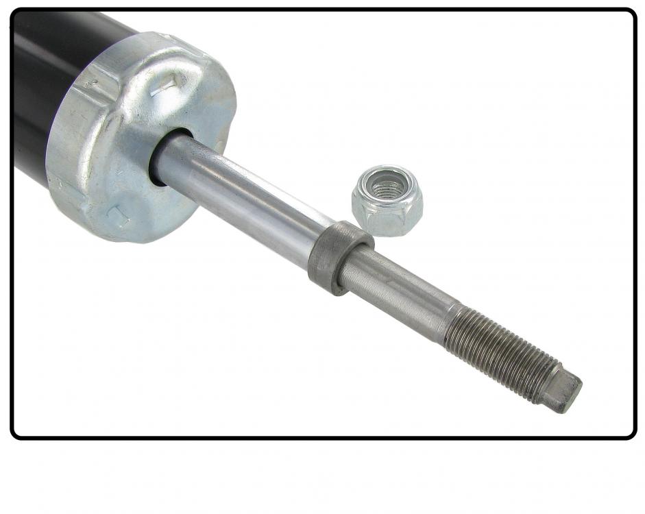 Huomaa! Iskunvaimentimissa, jotka on asennettu reikään, on metalliholkki, joka on puristettu kumiin. Vanhoja iskunvaimentimia purettaessa ne tahtovat joskus tarttua tukivarteen tai kiinnityspulttiin (ruostuneet paikalleen), jolloin uusi iskunvaimennin ei tunnu sopivan. Poista nämä ensin ennen uuden iskunvaimentimen asentamista.