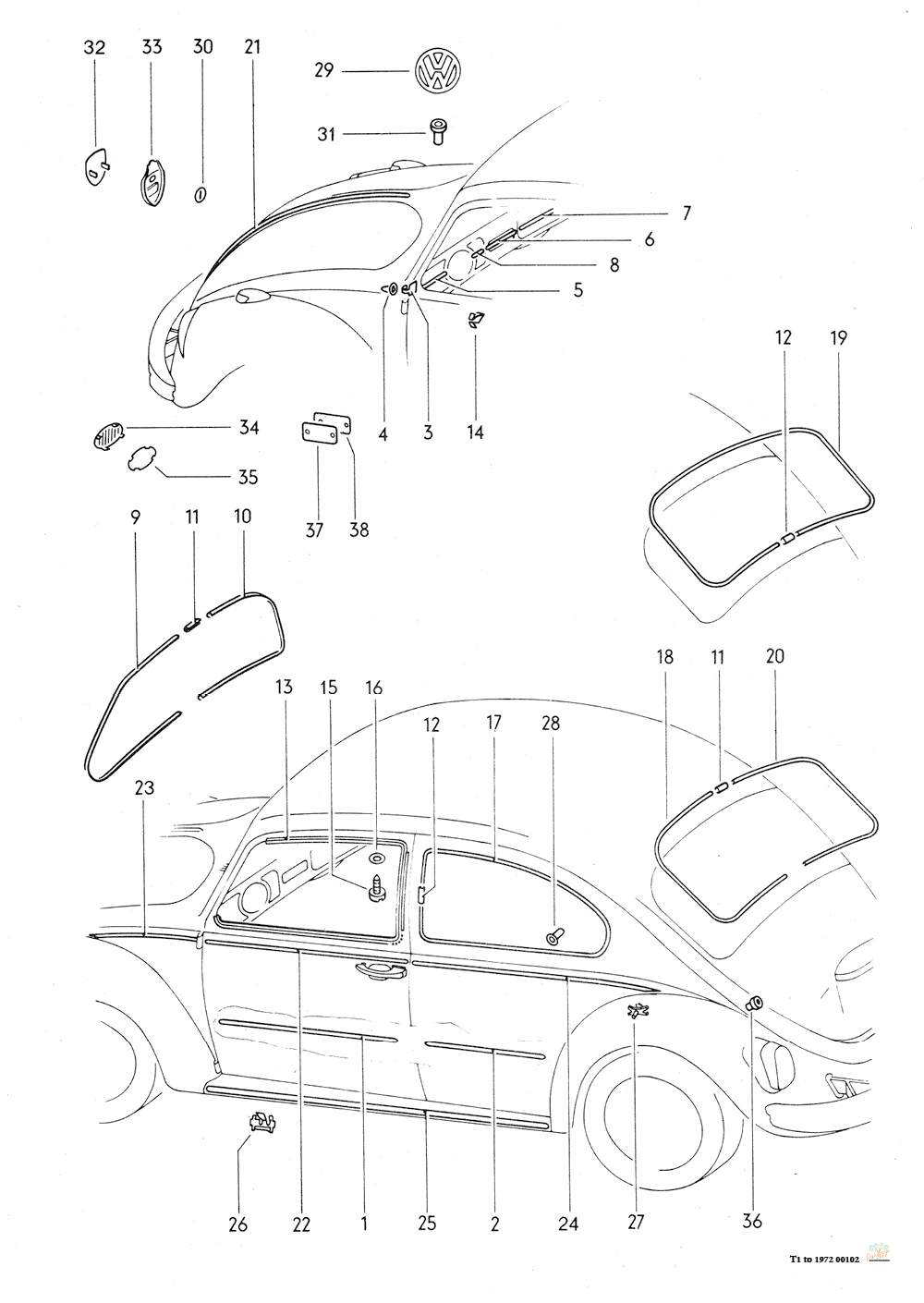 Vuosien varrella on tuotu markkinoille monia erilaisia tunnuksia, ja olemme pyrkineet sisällyttämään valikoimaamme mahdollisimman monta tunnusta, joista suurin osa on VW-alkuperää. Katso merkkiä, kun mainitaan "Volkswagen Classic Parts" tai "Original Ersatzteile", ne ovat alkuperäisiä VW-osia.