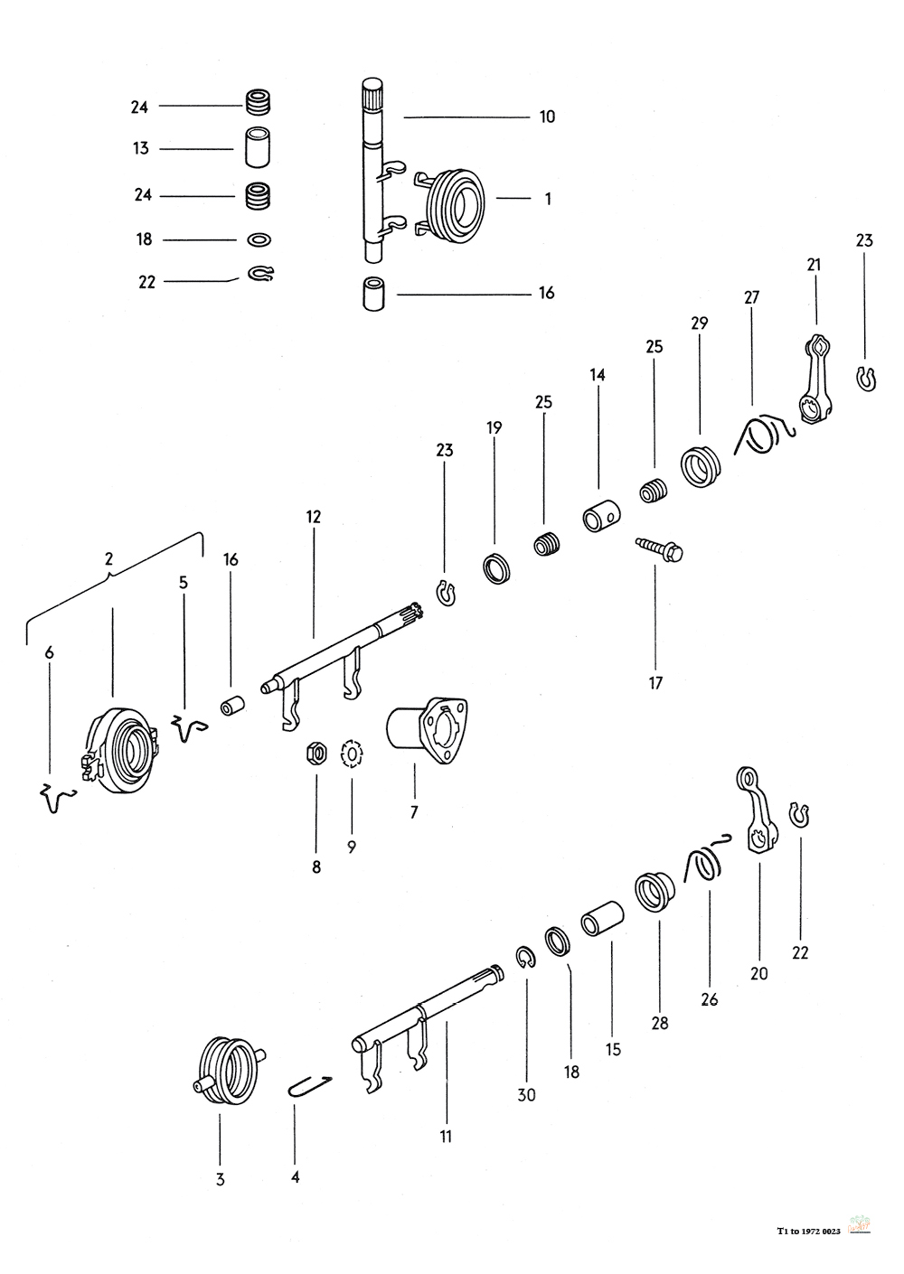 -Työntölaakerin ohjausholkin kokoonpano vuoteen 1973 asti (VIN 213 2194 781) 3 kpl