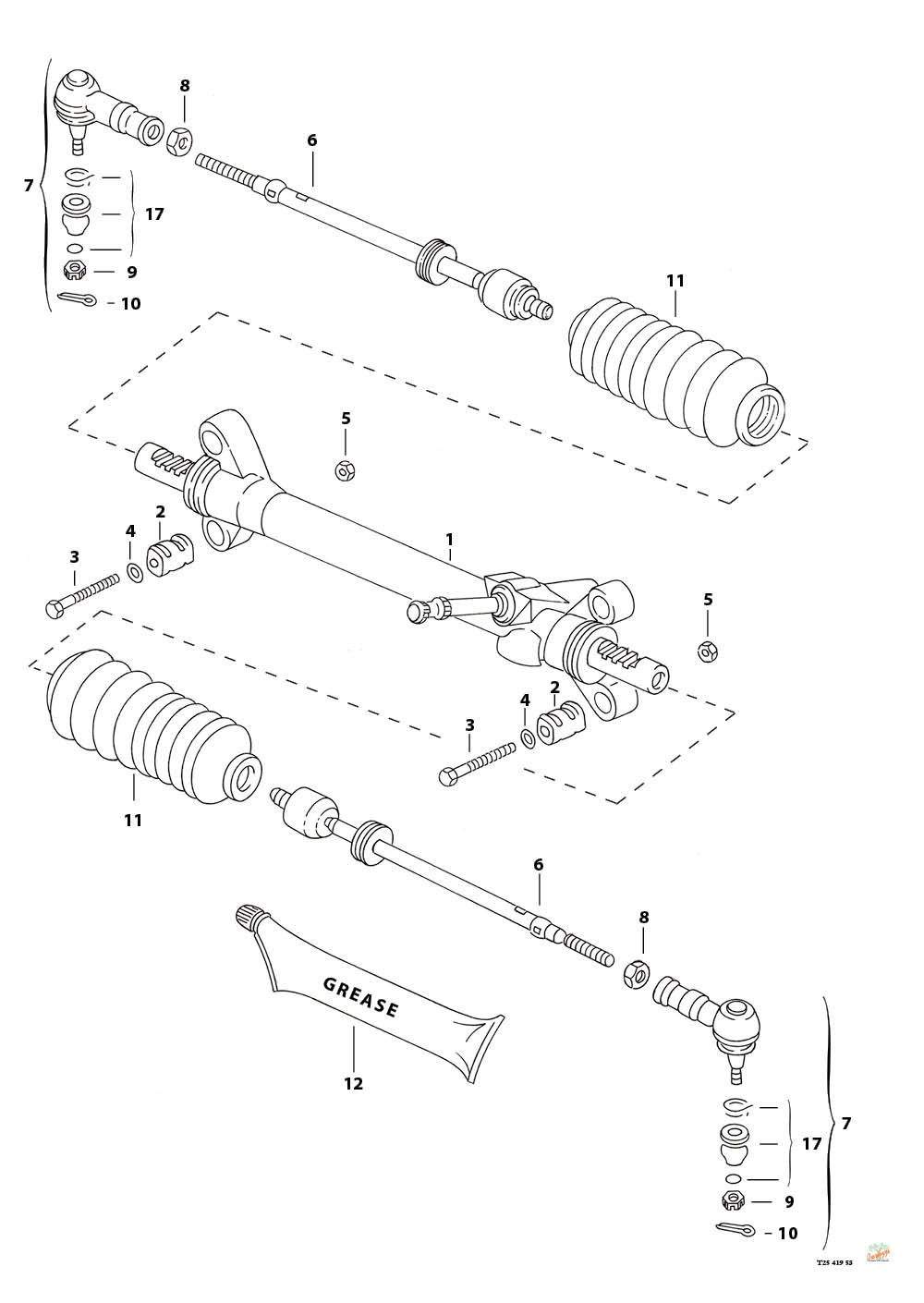 Ohjauslaatikko on kiinnitetty yhteensä neljään paikkaan näillä silentblockeilla, joten on suositeltavaa vaihtaa kaikki neljä samalla kertaa.