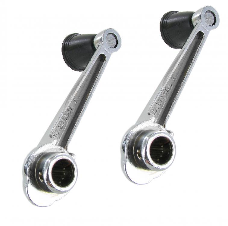 Sur les Volkswagen produites jusqu'en 1966, les manivelles des lève-vitres sont chromées et munies d'un bouton disponible en plusieurs couleurs. Si vous avez les bonnes manivelles de fenêtre, la couleur des manivelles de fenêtre correspondra à la couleur des boutons du tableau de bord telle qu'elle était appliquée en usine à l'époque.