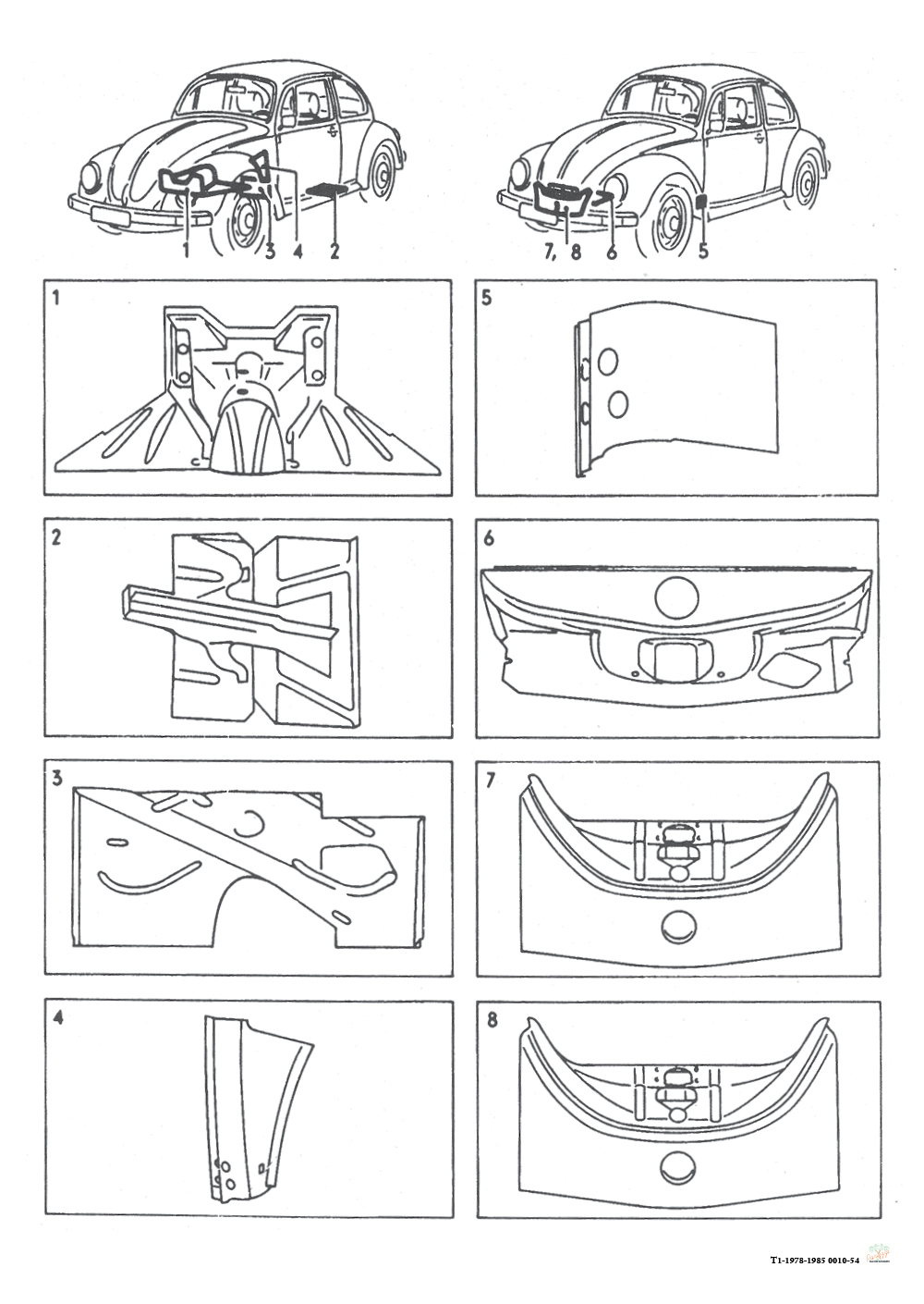 Scharnierbevestiging plaatwerkdelen lopen naar binnen tot het binnenspatbord en aan de buitenzijde tot de omgebogen felsnaad. Als de scharnierbevestiging zich nog in een goede staat bevindt, kun je overwegen om alleen de buitenzijde te vervangen, als ook dit niet meer valt te redden neem dan het complete deel, dus inclusief scharnierbevestiging.