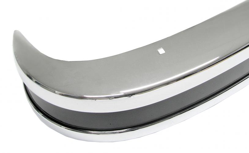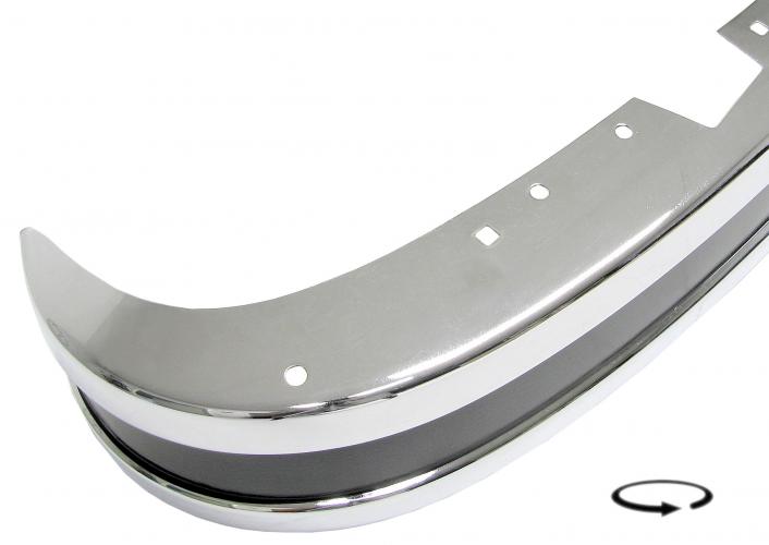 Alleen de luxe uitvoeringen, bedoeld voor personenvervoer, of de exemplaren die waren ingericht als camper hadden af fabriek verchroomde bumpers, bij alle andere uitvoeringen waren ze in zwarte of witte lak gespoten. Als je nu in het bezit bent van een Volkswagen Bus met gespoten bumpers en je wilt een luxe uitstraling creëren, dan kun je overwegen om je bestaande bumpers te vervangen door deze verchroomde exemplaren. Maar we willen je er wel op wijzen dat de chroomkwaliteit niet gelijk is aan wat er voeger af fabriek werd gemonteerd. Je zult direct na aankoop het chroom goed moeten onderhouden, er zit dan ook geen enkele vorm van garantie op de chroomlaag.