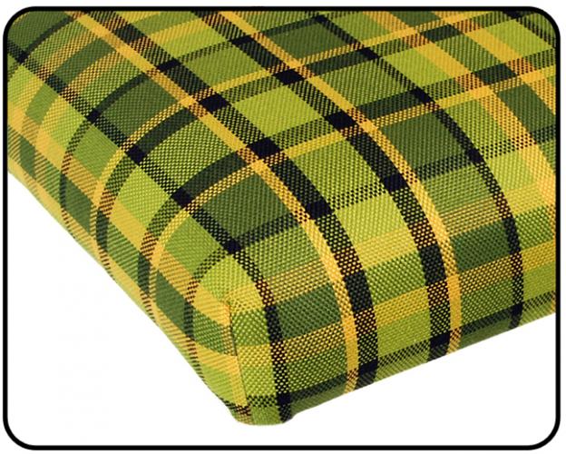 De hier vermelde vervangende bekleding is gelijk aan het originele ruitmotief van Westfalia en bedoeld voor het opnieuw bekleden van het matras boven de motorruimte, deze fungeert als een opengeklapte slaapbank als tweepersoonsbed.