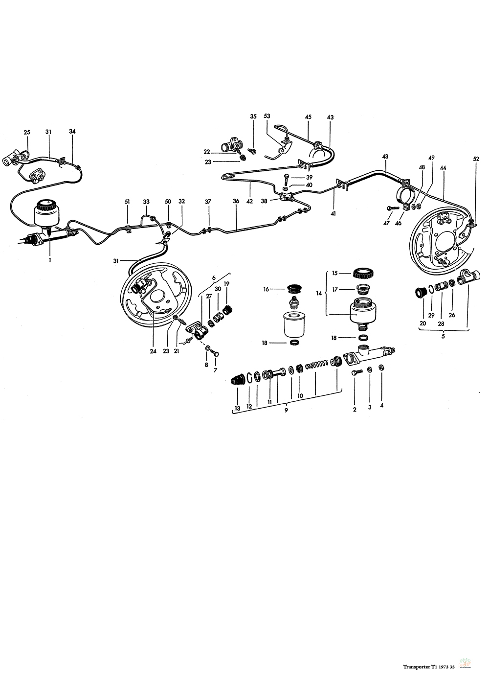 Wagens voorzien van een enkele werkend remsysteem hebben een remvloeistof reservoir zonder tussenschot en één slang naar de hoofdremcilinder. Bij een gescheiden remsysteem is het reservoir in twee delen verdeeld, voor de voor- en achterremmen met twee slangen naar de hoofdremcilinder