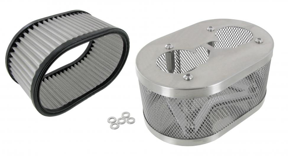 Als je motor is voorzien van Weber, EMPI of Dellorto carburateurs dan is hiervoor een ruime keuze aan luchtfilters beschikbaar. De meeste luchtfilters zijn voorzien van een verchroomde of aluminium bovenzijde. Maar wil je maximale kwaliteit en uitstraling dan is er voor de Weber IDF, EMPI HPMX, EMPI D-series en de Dellorto DRLA luchtfilters het hier vermelde "Classic Style"' luchtfilter dat in zijn geheel uit 304 RVS is vervaardigd.