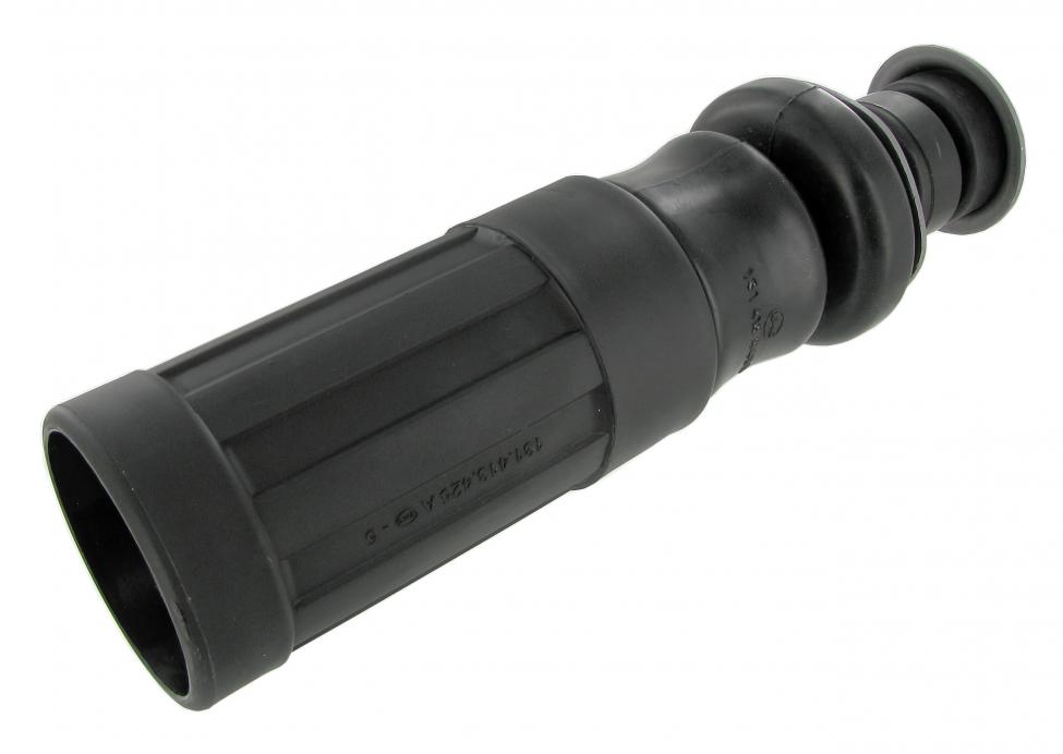 Montage: Monteer als eerste de stofhoes aan het aanslagrubber, gebruik hiervoor glycerine en trek de lip van het rubber met een touwtje in de stofhoes, op een gelijke manier zoals je een ruitrubber zou monteren. Schuif het geheel over de schokbreker en draai de schokbreker vast in het metalen montagestuk, als laatste druk je het aanslagrubber over de knobbel van het montagestuk ook weer met gebruik van glycerine. Gebruik uitsluitend glycerine als glijmiddel en geen andere middelen, de kans dat het rubber met alternatieve glijmiddelen wordt aangetast is hiermee zeer groot.
