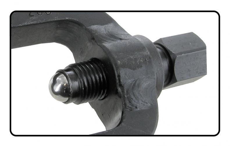 Een hard stalen kogel drukt op het midden van het draadeind van de kogel, hierdoor is de kans op beschadigen van de schroefdraad tot een minimum beperkt. Heeft een werkruimte tussen de 18 en 25 mm, waarmee je moeiteloos je stuurkogels kunt uitpersen.