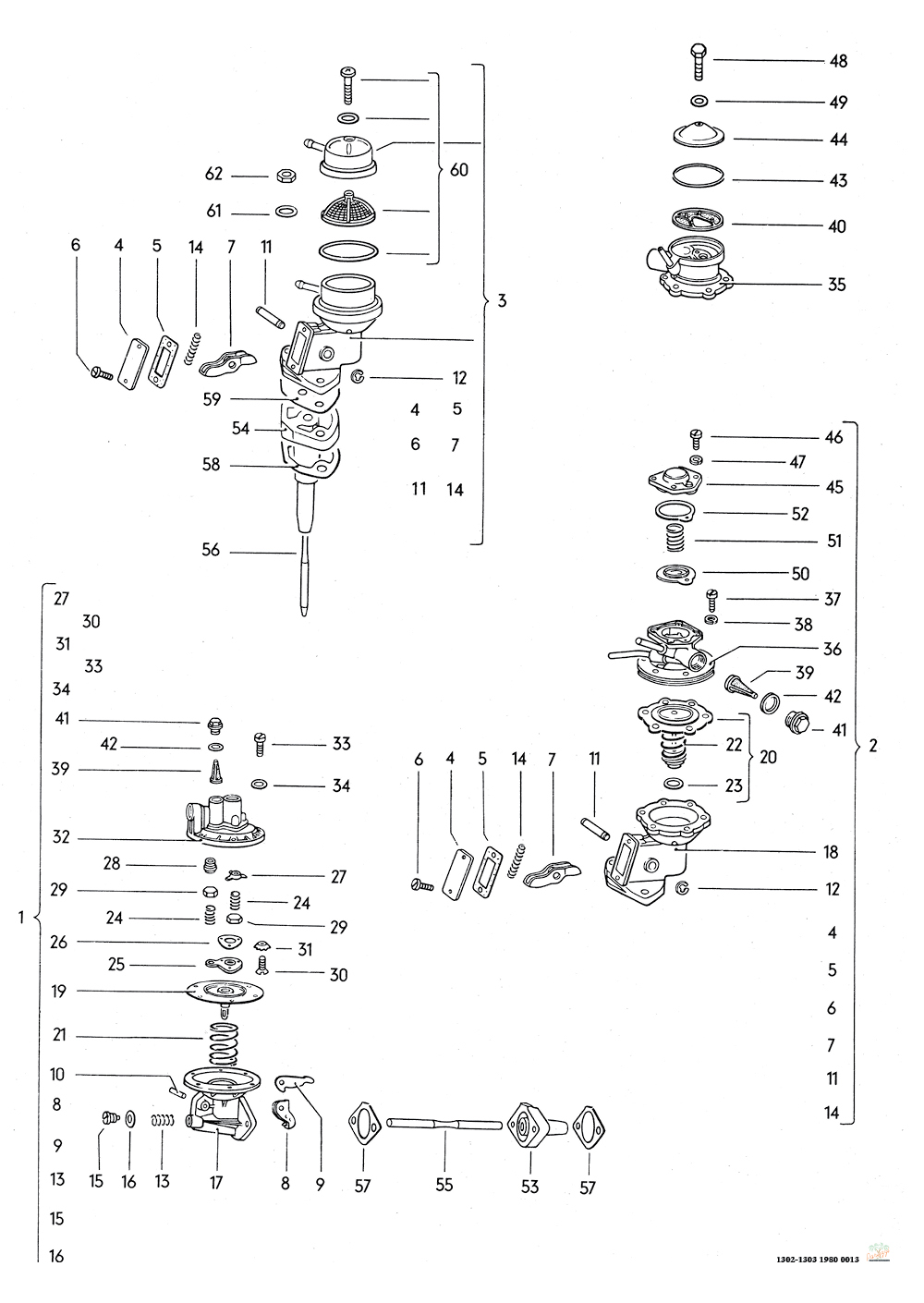 Atenção! Como muitos motores já não têm a bomba de combustível original, é importante verificar o comprimento da biela. Uma bomba de combustível de um mau ano de construção com um comprimento de biela incorreto causa problemas, a sua bomba não é eficiente ou parte-se a bomba imediatamente após o arranque. Deve também certificar-se de que a haste se pode mover suavemente no suporte da bomba de combustível; limpe o suporte da bomba de combustível com uma lima macia se não for esse o caso (não se aplica aos motores de tipo 4). Se a haste não se puder mover suavemente através da caixa, pode encravar quando o motor aquecer e a bomba de combustível deixará de funcionar.