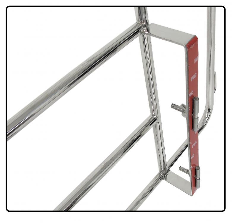 Se necessitar de mais espaço para a sua bagagem, o Volkswagen Carocha ou o Karmann Ghia também podem ser equipados com um porta-bagagens para o capot do motor. Estes porta-bagagens são montados entre as ranhuras de refrigeração e, no Volkswagen Carocha, também nos suportes do para-choques. Para o Karmann Ghia, não há qualquer obstáculo à abertura do capot do motor; para o Volkswagen Carocha, é necessário desaparafusar os suportes de montagem inferiores e inclinar ou deslizar o porta-bagagens para cima. Disponível com estrutura cromada, galvanizada ou em aço inoxidável, equipada com vigas de madeira ou de metal. Todos os porta-bagagens são fornecidos com ferragens de montagem.