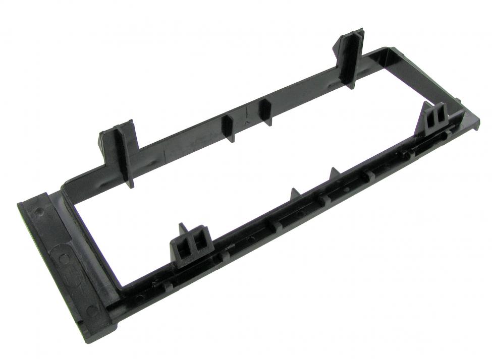 Den nya ramen rymmer både den gamla bilradiostorleken (upp till 40 x 180 mm) och DIN-storleken (50 x 180 mm). Om du bestämmer dig för att installera en bilradio i DIN-storlek måste du ta bort ramens upphöjda bafflar.