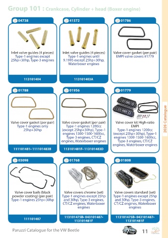 Inlet valve guides (4 pieces) Inlet valve guides (4 pieces) Valve cover gasket (per pair)