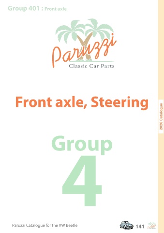 Group 401 : Front axle Classic Car Parts Front axle, Steering Group 4 P aruzzi C a talogue f or the V W B eetle 141 Paruzzi Catalogue for the VW Beetle 141 AR C R A P S A CL CLASSIC CAR PARTS T S C I S