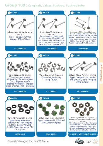 Group 109 : Camshaft, Valves, Pushrod, Pushrod tube