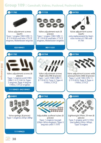 Group 109 : Camshaft, Valves, Pushrod, Pushrod tube