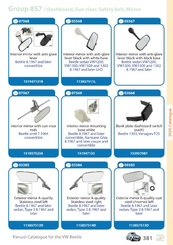 Group 857 : Dashboard, Sun visor, Safety belt, Mirror