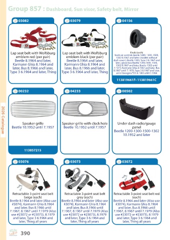 Group 857 : Dashboard, Sun visor, Safety belt, Mirror