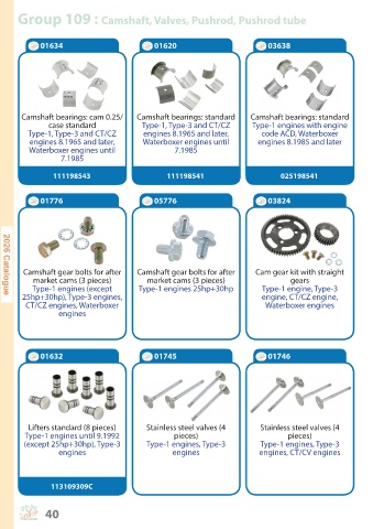 Group 109 : Camshaft, Valves, Pushrod, Pushrod tube