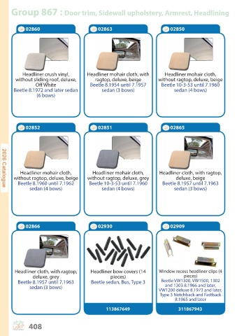 Group 867 : Door trim, Sidewall upholstery, Armrest, Headlining