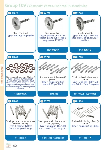Group 109 : Camshaft, Valves, Pushrod, Pushrod tube