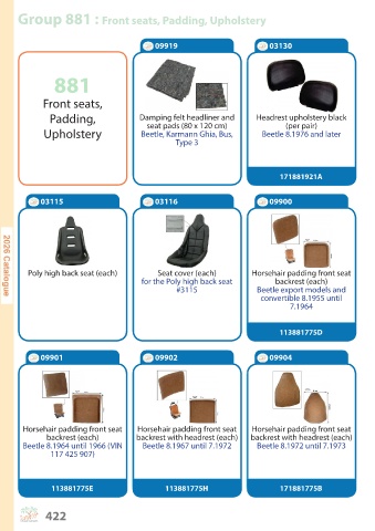 Upholstery Beetle, Karmann Ghia, Bus, Beetle 8.1976 and later