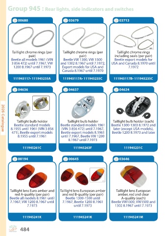 Group 945 : Rear lights, side indicators and switches