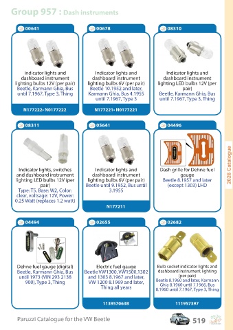 lighting LED bulbs 12V (per lighting bulbs 6V (per pair) Beetle 8.1957 and later