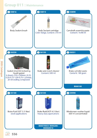 Body Sealant brush Body Sealant cartridge Camshaft assembly paste