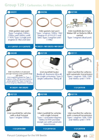 Group 129 : Carburetor, Air filter, Inlet manifold