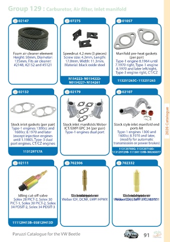 Group 129 : Carburetor, Air filter, Inlet manifold