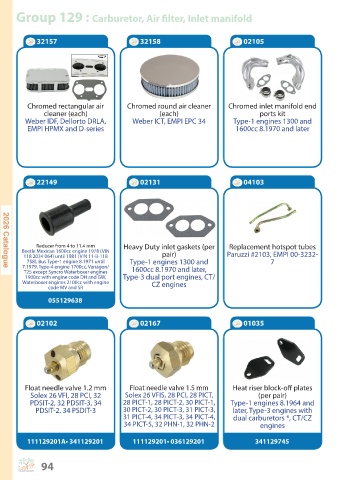 Group 129 : Carburetor, Air filter, Inlet manifold