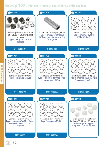 Group 107 : Pistons, Piston rings, Piston / cylinder kits