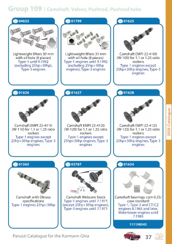 Group 109 : Camshaft, Valves, Pushrod, Pushrod tube