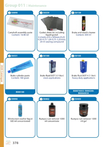 Camshaft assembly paste Gasket sheet kit including Brake and clutch cleaner