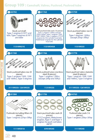 Group 109 : Camshaft, Valves, Pushrod, Pushrod tube