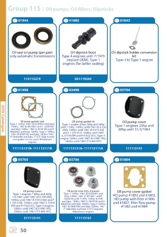 Group 115 : Oil pumps, Oil fillers, Dipsticks