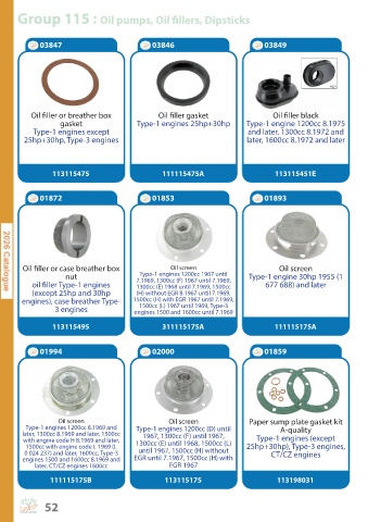 Group 115 : Oil pumps, Oil fillers, Dipsticks